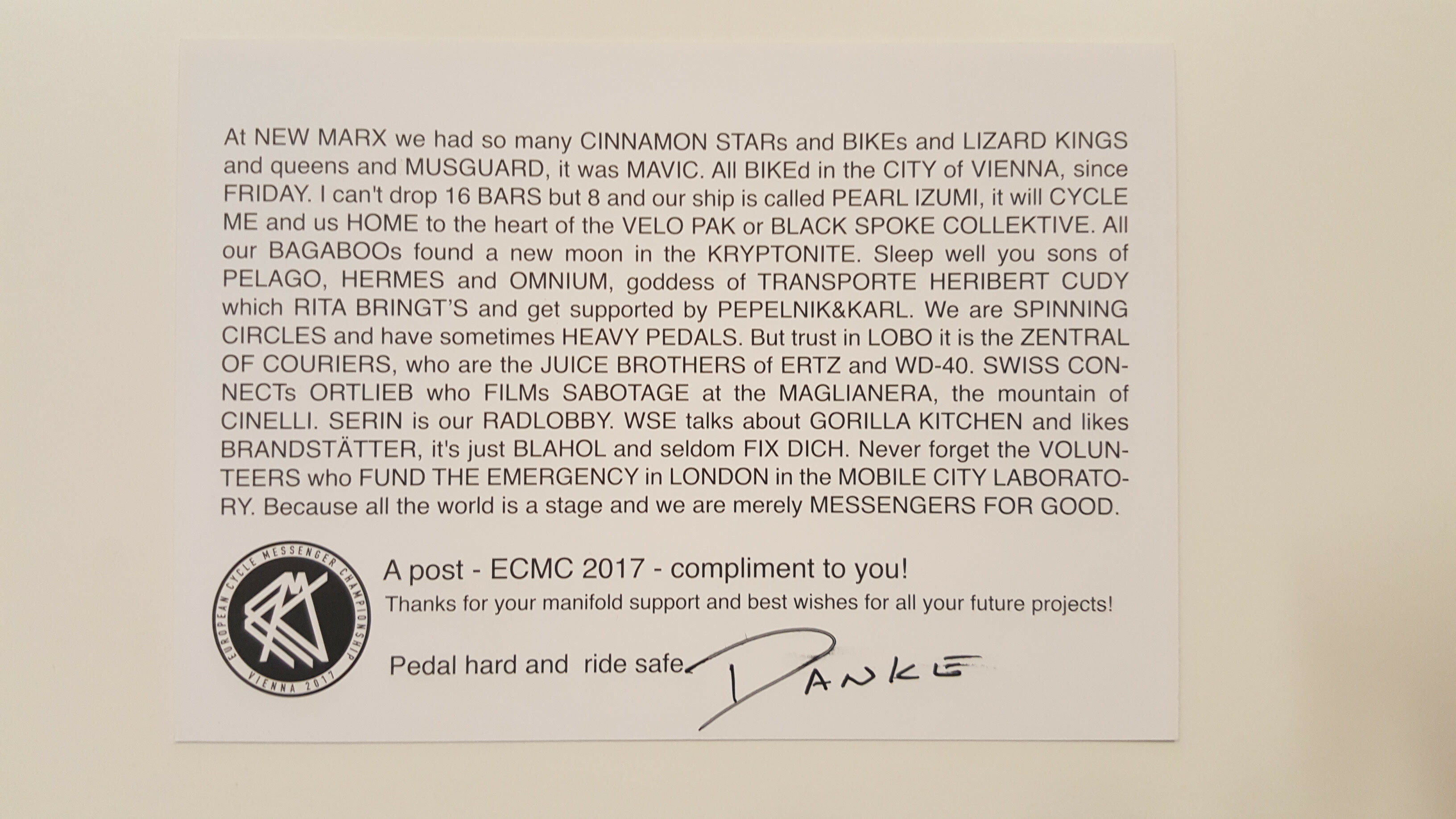 Pepelnik & Karl unterstützen die European Cycle Messenger Championship 2017.